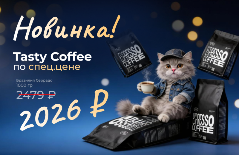 Если вам нужен натуральный кофе в зернах для эспрессо без сложностей — выбирайте моносорта Tasty Coffee в нужной фасовке. Сейчас особенно выгодно брать позиции по сниженной цене на Бразилию Серрадо.