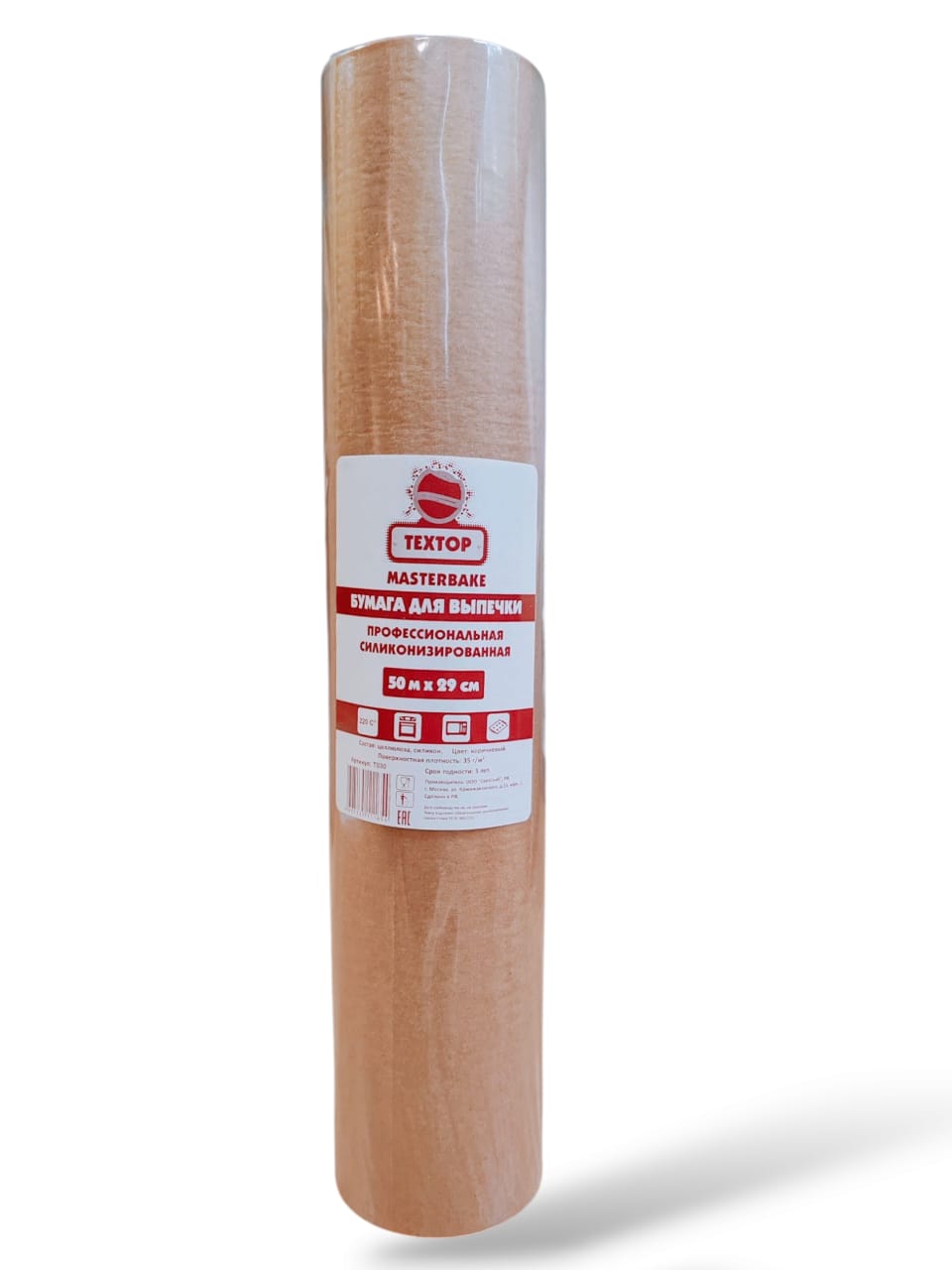 Профессиональная пергаментная бумага для выпечки силиконизированная Textop. Прочность (толщина) бумаги 35 мкр – плотная, хорошо держит форму, многоразовая. Ширина рулона 29 см. Длина намотки 50 метров. Изготовлена из целлюлозы, с двух сторон - пищевой силикон, при котором выпечка и запекание происходит без использования масел и жиров при температуре до 220° и полностью предотвращает пригорание и прилипание к посуде. Снижает калорийность блюд.