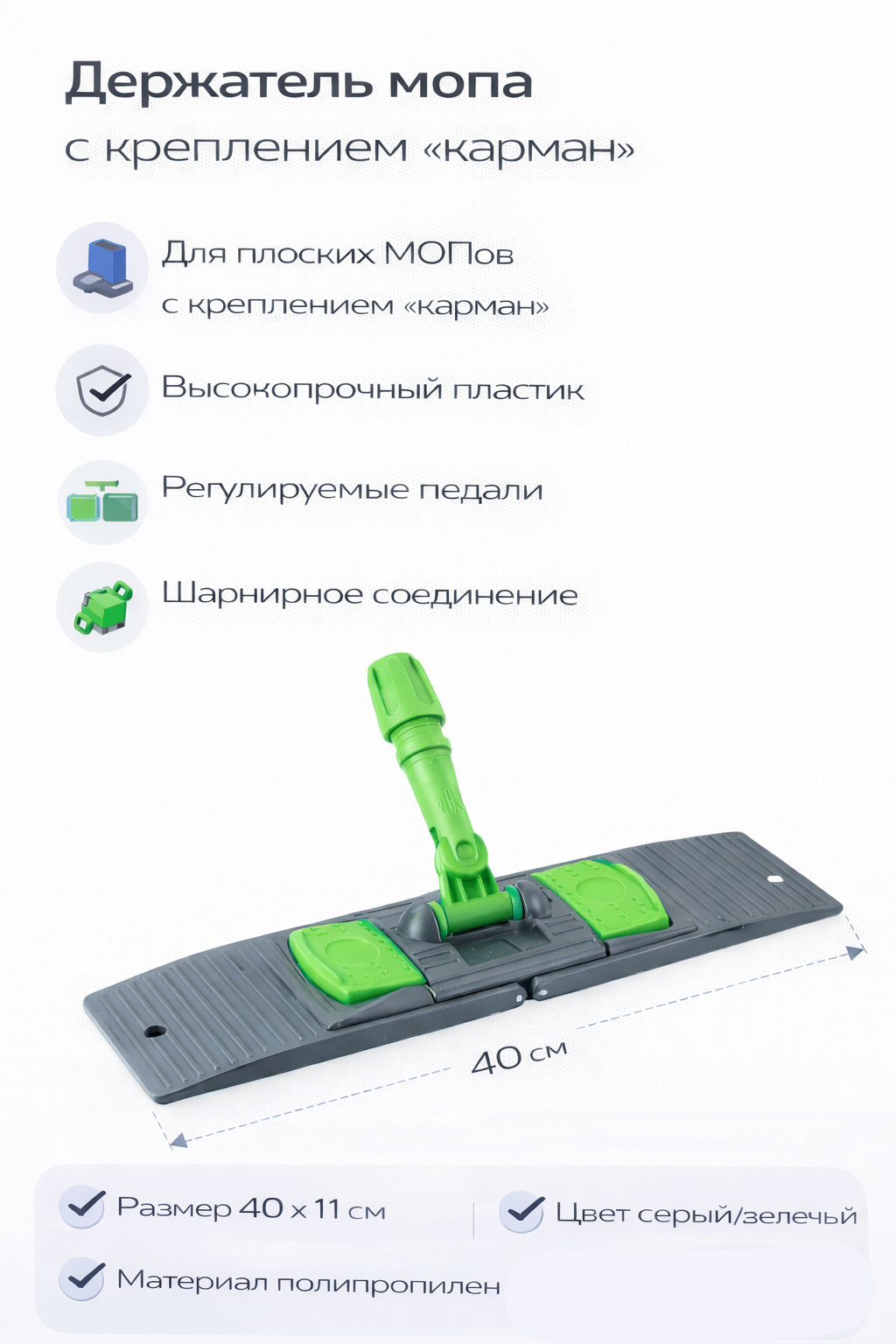 Держатель мопа подходит для плоских мопов с креплением «карман».