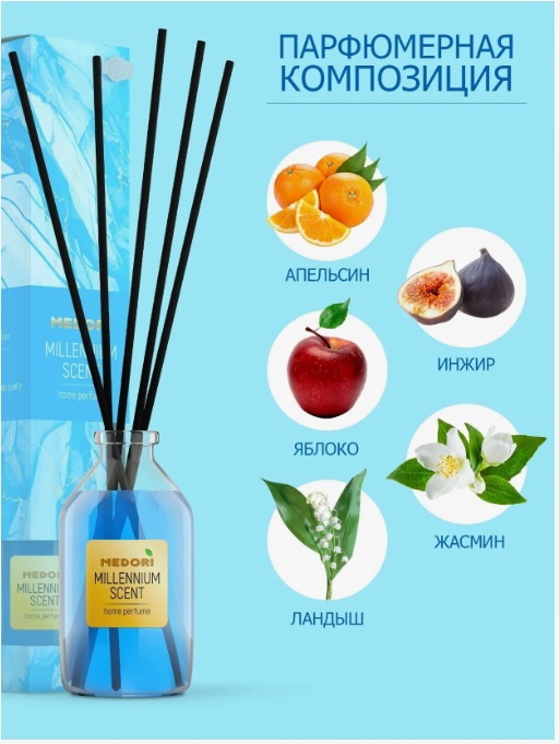 В набор входит: Диффузор - 50мл; фибровые палочки - 5шт;