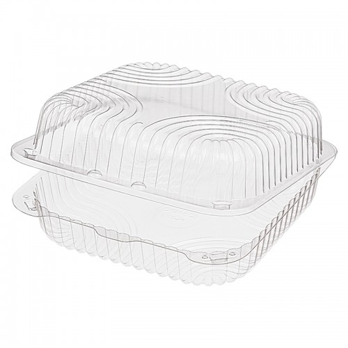 Контейнер-ракушка РК-22 (Т) предназначен для фасовки различных кондитерских изделий, в том числе для пирожных и нарезных пирогов. Закрывается с помощью двух надежных прямоугольных клипсовых замков.