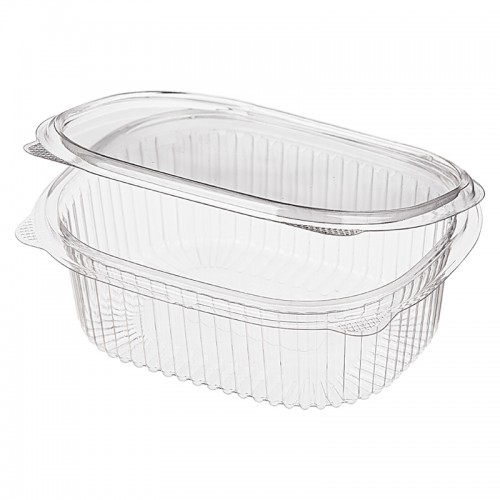 Салатник РКС-500 типа «ракушка» с несъемной крышкой овальной формы выполнен из двуосно-ориентированного полистирола БОПС, цвет прозрачный. Замок «П» образный, герметичный, на крышке и корпусе есть «ушки» - для удобства открывания. Контейнер применяется для расфасовки и упаковки холодных блюд, салатов, орехов, сухофруктов. Не разогревать в микроволновке.