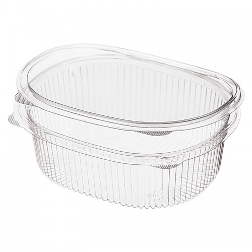 Салатник РКС-750 (ОП) типа «ракушка» с несъемной крышкой овальной формы выполнен из двуосно-ориентированного полистирола БОПС, цвет прозрачный. Замок «П» образный, герметичный, на крышке и корпусе есть «ушки» - для удобства открывания. Контейнер применяется для расфасовки и упаковки холодных блюд, салатов, орехов, сухофруктов. Не разогревать в микроволновке.