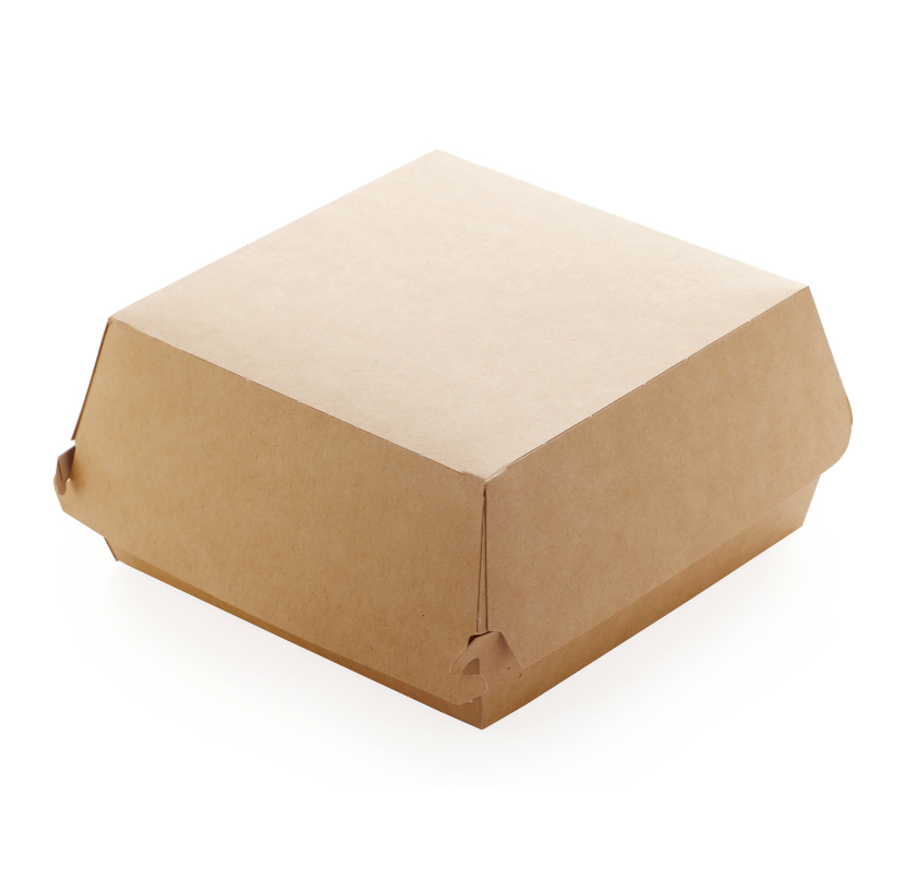 Упаковка для бургера размера L из плотного картона с ламиницией изнутри. Устойчива к прожириванию и промасливанию. Подходит для разогрева в микроволновой печи.