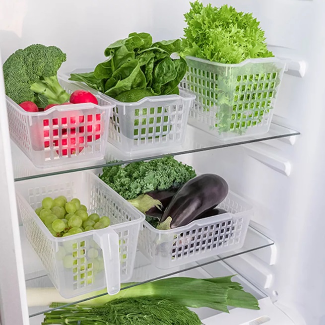 Благодаря перфорации на стенках корзинки создается дополнительная вентиляция содержимого. Корзинки легко вкладываются друг в друга в пустом виде для экономии места на кухне.