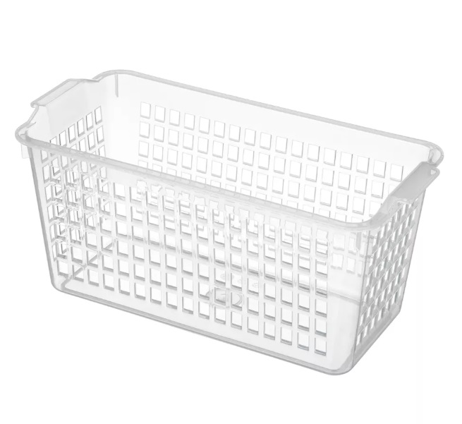 Универсальная корзинка подходит для организации хранения на вашей кухне и в холодильнике. Простое решение для хранения фруктов, овощей, йогуртов, сыров и других продуктов на полках холодильника. Высокие стенки корзинки позволят удобно хранить соусы в упаковке дой-пак.