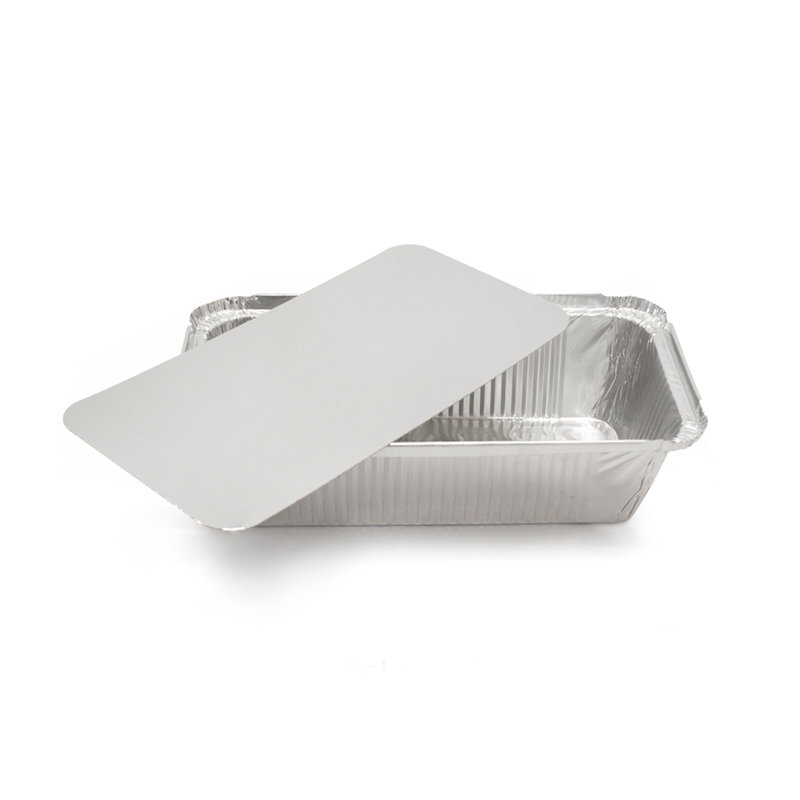Крышка из фольгированного картона для алюминиевой формы на 940 мл позволит сохранить температуру горячих блюд.