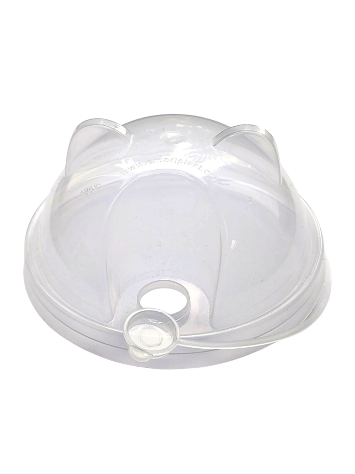 Пластиковая крышка купольная диаметром 90 мм с отверстием, и с ушками по верху купола. Изготовлена из высококачественного пищевого пластика. Легкая и прочная, не требует мытья после использования и легко утилизируется.