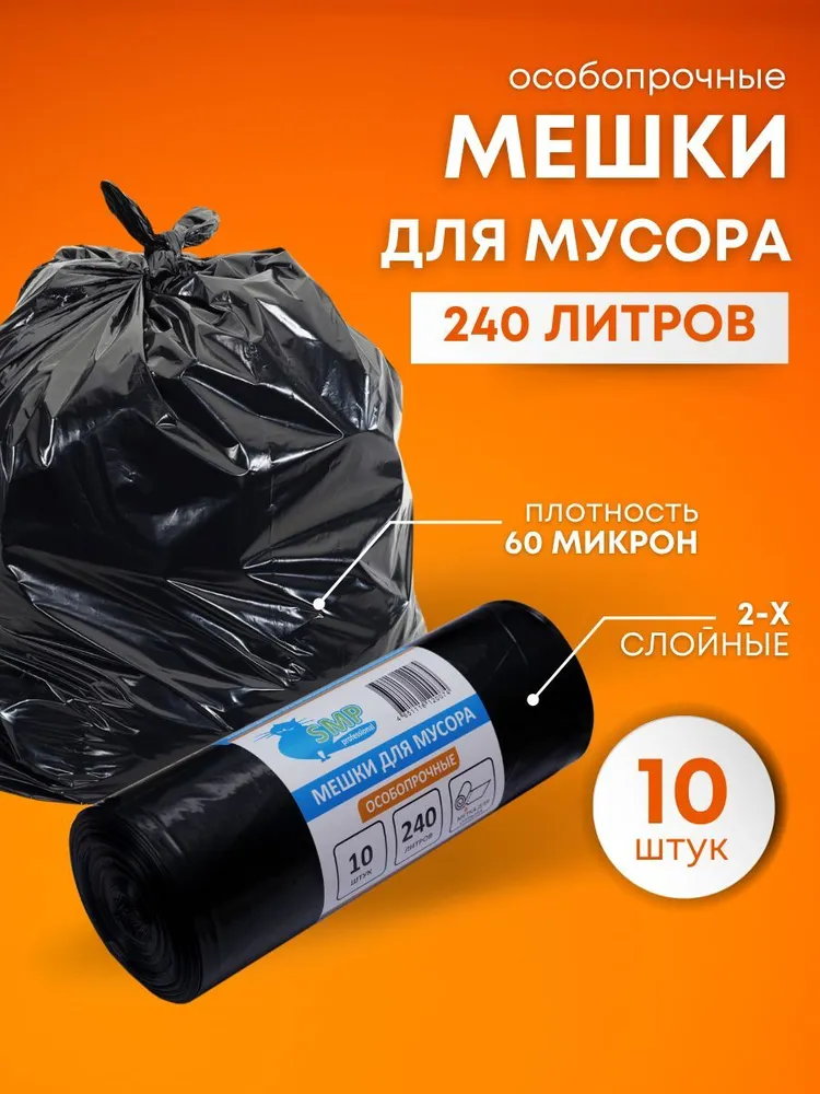 Качественные мусорные мешки для мусора "SMP" в рулоне, особо прочные. Применяются в быту и на производстве для утилизации тяжелых отходов. Высокая плотность материала обеспечивает его устойчивость к проколам.