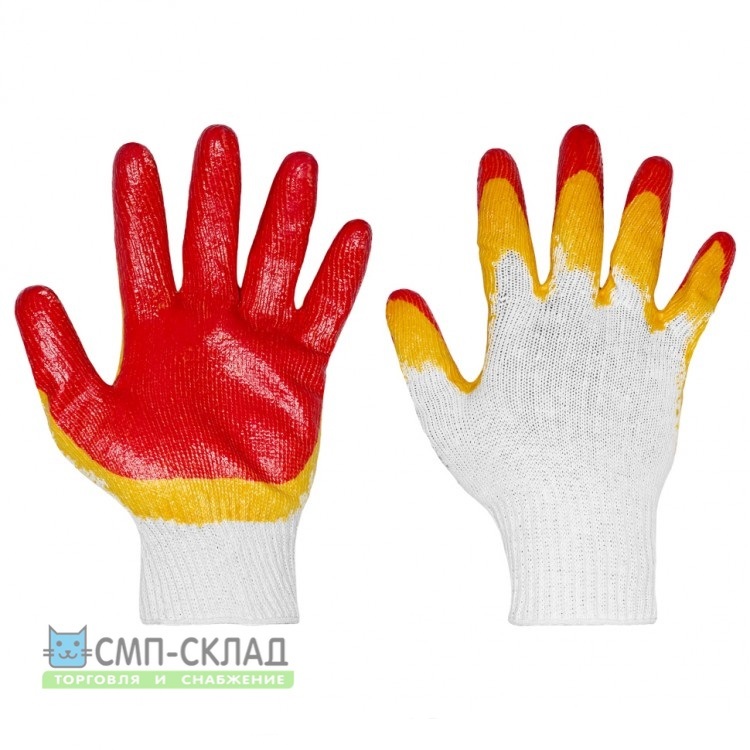 Перчатки двойной облив из натурального хлопка с двойным покрытием (обливом) из натурального латекса. Используются для различных видов работ. Двойное покрытие защищает от механических повреждений, острых углов.