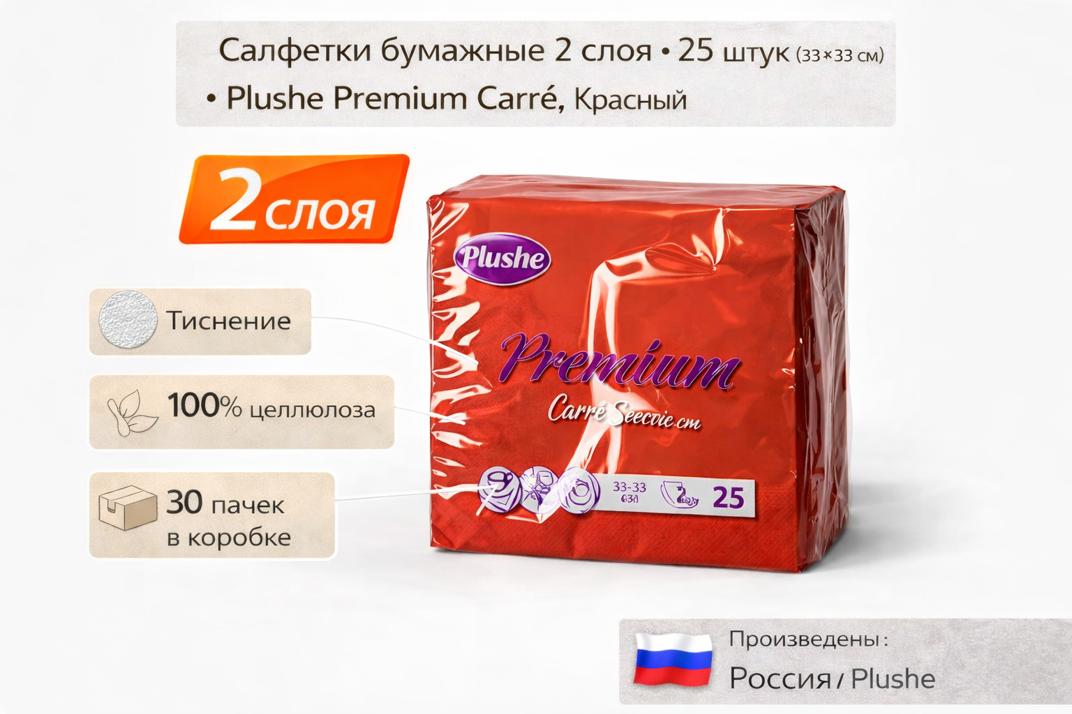 Двухслойные сервировочные салфетки Plushe Premium Сarre. Имеют тиснение. Сложены вчетверо.