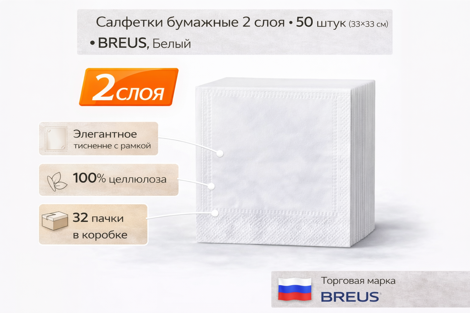 Количество салфеток в пачке: 50 шт