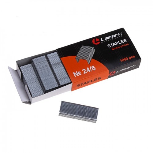 Скобы для степлера №24/6 металлические оцинкованные, 1000 штук в цветной картонной упаковке. Предназначены для степлеров со сшивающей способностью до 20 листов.