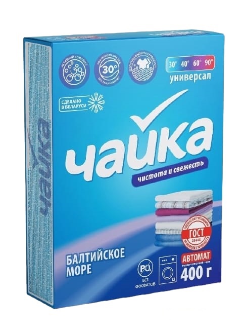 Универсальный стиральный порошок Чайка "Балтийское море" Справляется со всеми основными видами загрязнений. Подходит для стирки всех типов белья, кроме изделий из шерсти и шелка.