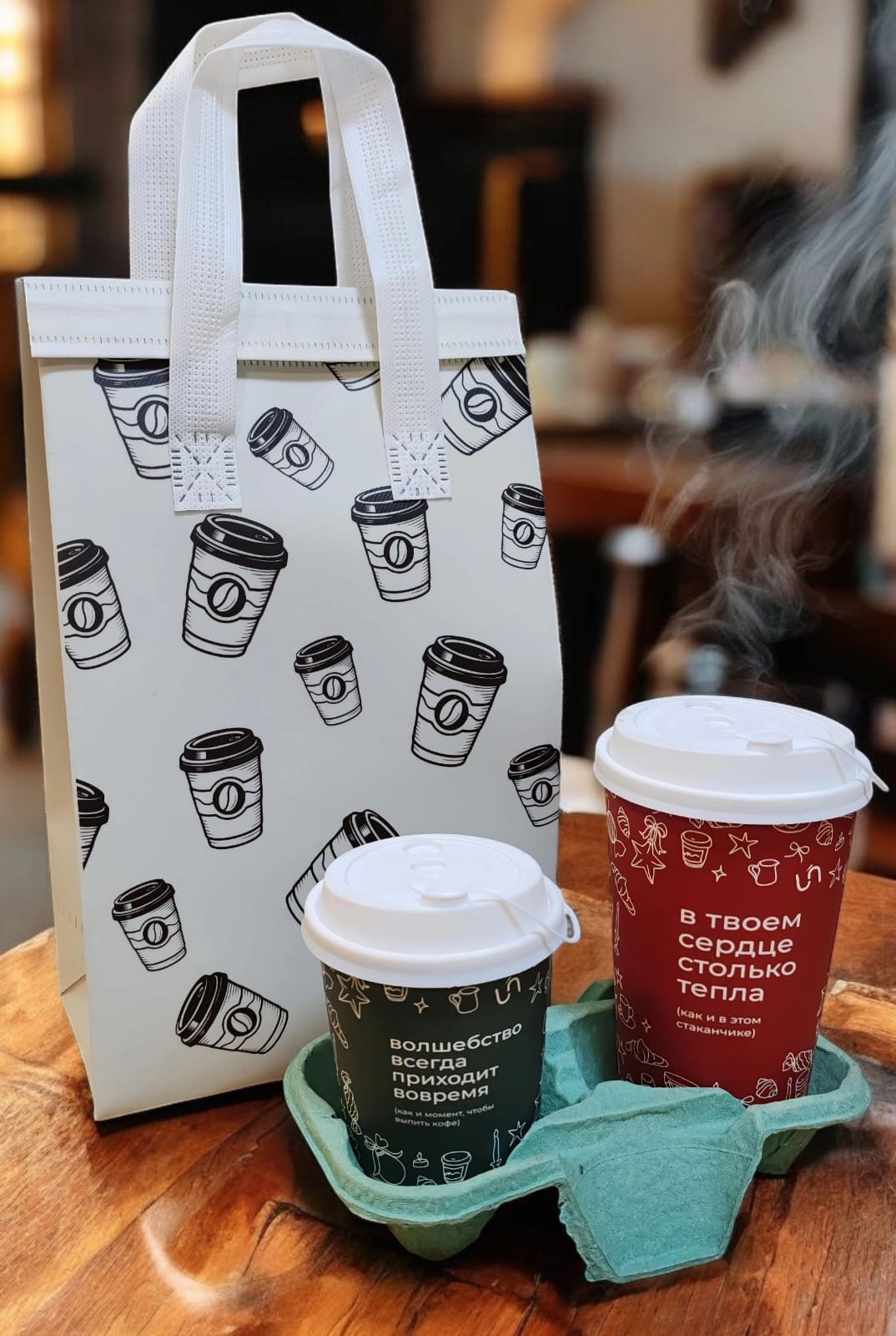 Термопакет (Термобэг) как переноска для двух стаканов кофе до 500 мл. или других пищевых продуктов. Имеет клапан на липучке, для герметичности и сохранения температуры продукта. Изготовлен из полимерных материалов. Экологичен и безопасен. Временно сохраняет терморежим внутри пакета ( тепло, холод). Эффектная подача кофе на вынос. Подходит для многократного использования.
