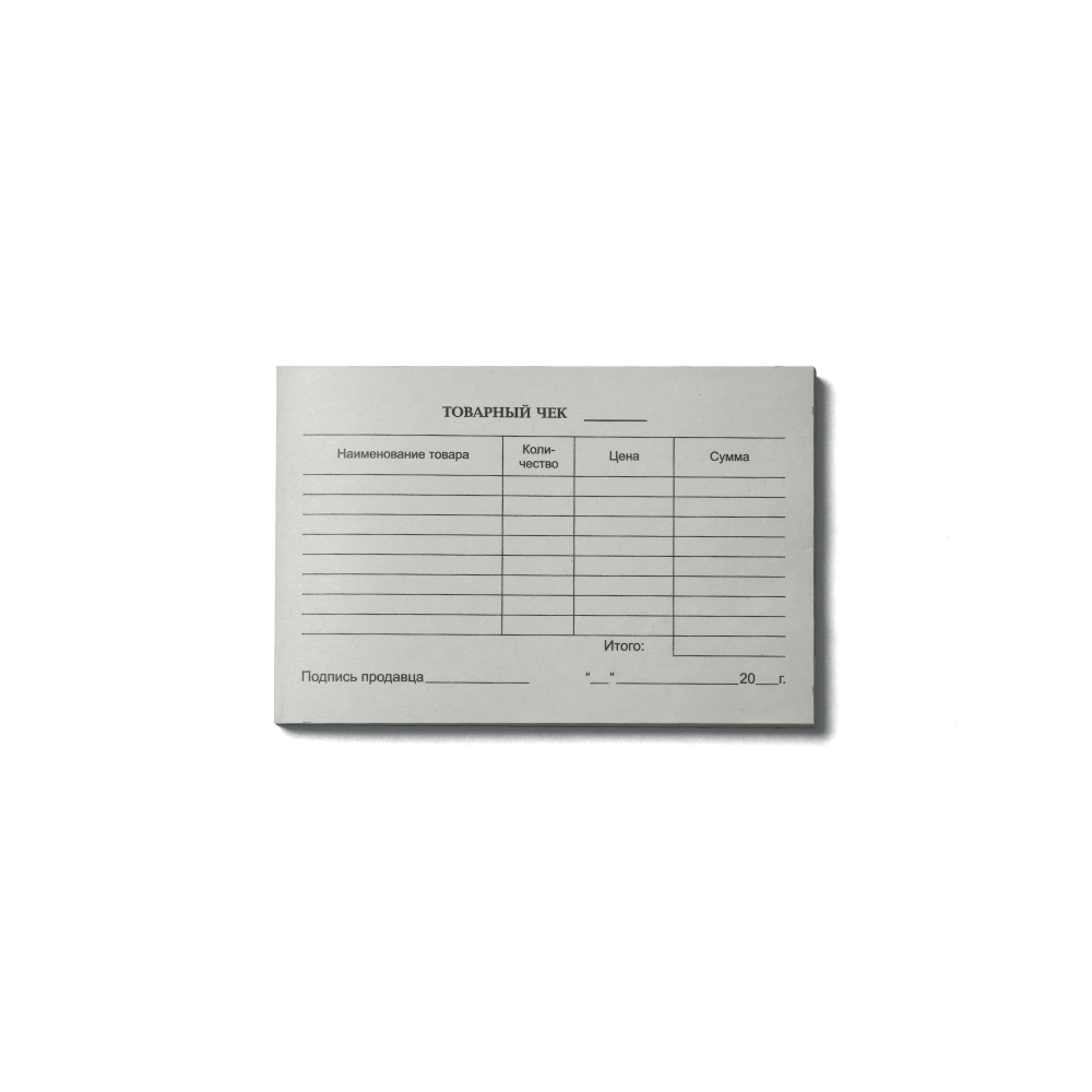 Товарный чектоварный чек. Подтверждает факт приобретения товара у продавца, служит для обоснования расходов (совместно с кассовым чеком). Бланки отпечатаны на офсетной бумаге формата А6.
