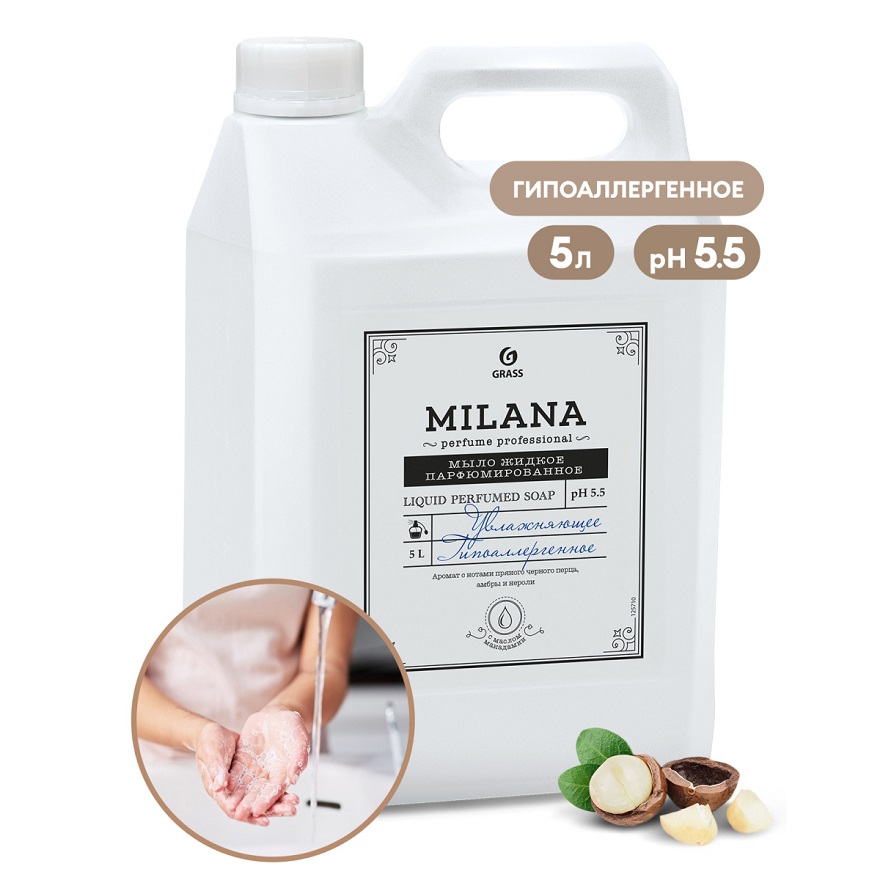 Жидкое мыло крем-мыло Milana Grass с высококачественным экологичными компонентами природного происхождения для ежедневного мытья рук взрослых и детей. Экологичная органическая основа данного пенного средства личной гигиены, обеспечивает мягкое деликатное очищение нежной и чувствительной кожи тела, удаление загрязнений. Обладает питательным и интенсивным увлажняющим эффектом как натуральное, а также защищает от бактерий. Особенно это важно для маленьких детей. Ароматизированное густое косметическое мыло без красителей Грасс Милана подойдет для любого дозатора или диспенсера в вашей ванной. Гигиеническое гипоаллергенное средство представлено в большом объеме - канистра 5 литров, поэтому станет оптимальным решением в хозяйстве для большой семьи.
