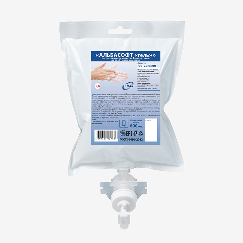 "АЛЬБАСОФТ "ГЕЛЬ" антисептическое средство бесспиртовое, не требующее смывания ТМ КЕМАN, картридж для диспенсера система К4 TM KEMAN.