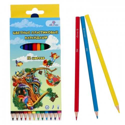 Карандаши цветные пластиковые 12цв Attomex в ассортименте, европодвес, картонная коробка.