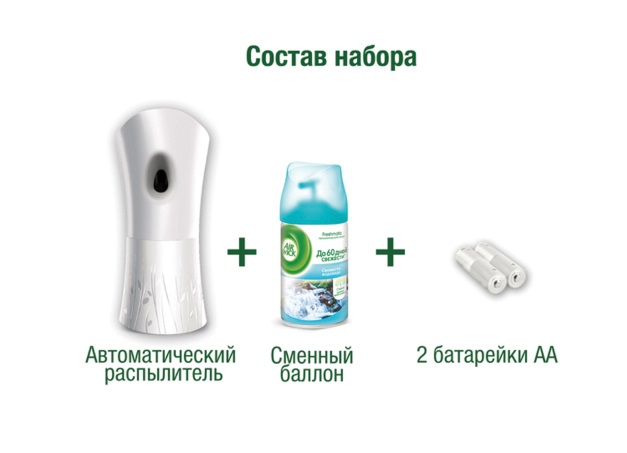 Комплект освежителя воздуха Air Wick в ассортименте с автоматическим распылителем, разработан специально, чтобы наполнять ваш дом приятным ароматом.