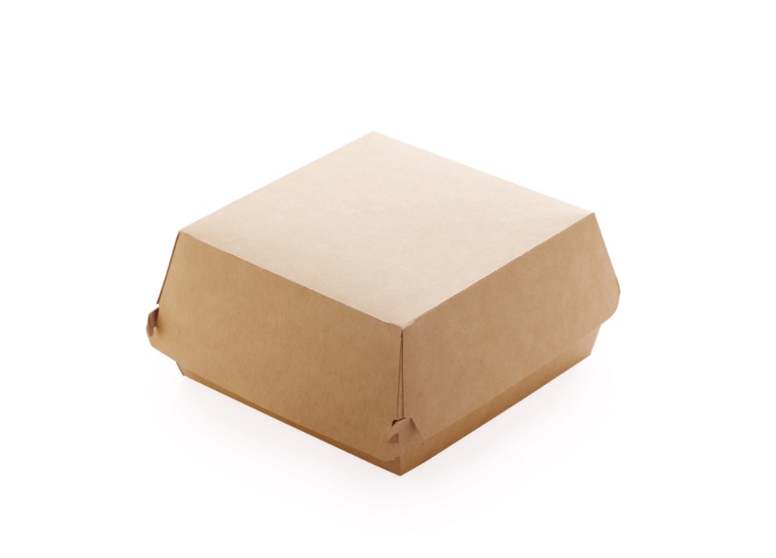 Упаковка для бургера из плотного картона с ламиницией изнутри.
