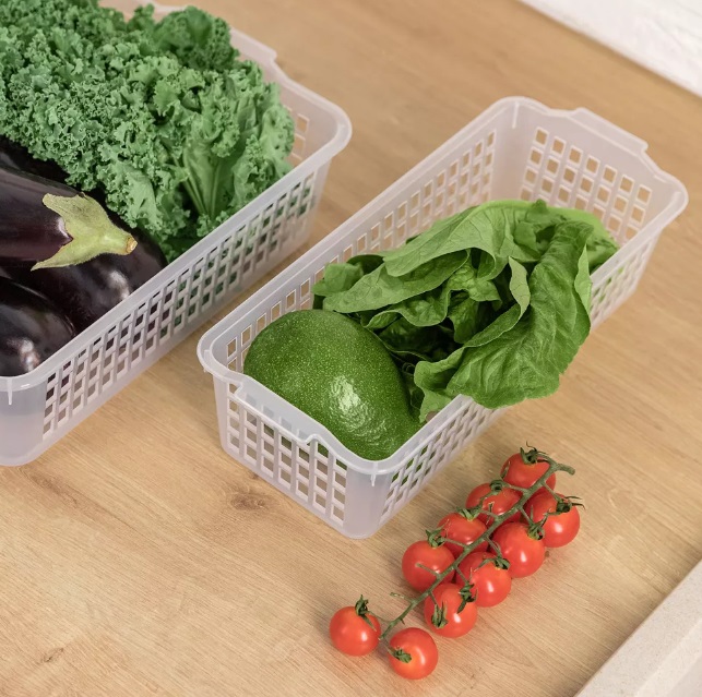 Благодаря перфорации на стенках корзинки создается дополнительная вентиляция содержимого. Корзинки легко вкладываются друг в друга в пустом виде для экономии места на кухне.