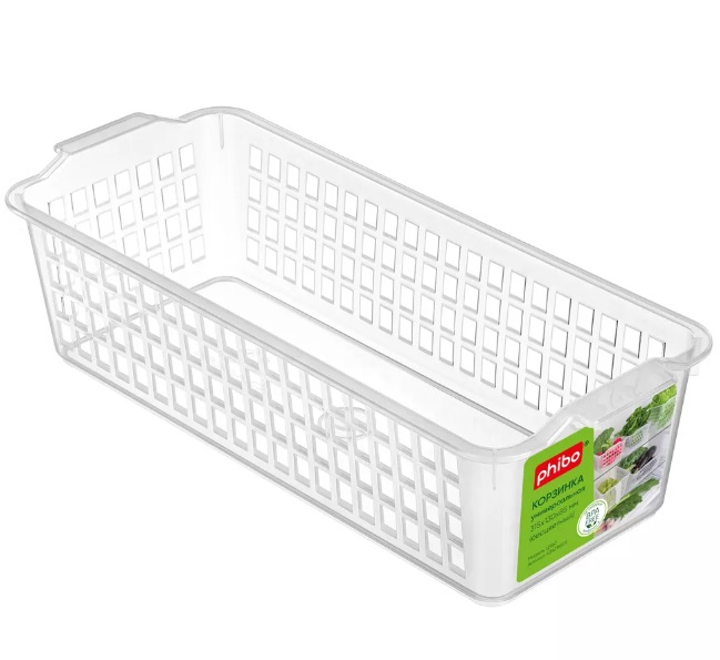 Универсальная корзинка подходит для организации хранения на вашей кухне и в холодильнике. Простое решение для хранения фруктов, овощей, йогуртов, сыров и других продуктов на полках холодильника. Высокие стенки корзинки позволят удобно хранить соусы в упаковке дой-пак.