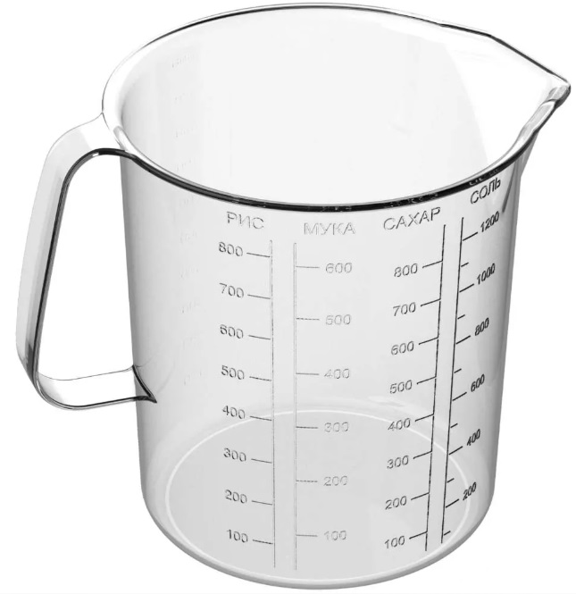 Удобная мерная кружка поможет быстро и легко измерить любые жидкие ингредиенты с помощью удобной мерной шкалы в литрах и миллилитрах – будь то вода, соус, бульон, молоко, сливки и другие жидкости. Кружка вмещает до 1 л. Дополнительная мерная шкала в граммах подойдет для точного измерения сухих ингредиентов, например, сахара для выпечки, без использования весов. Мерная шкала для измерения в чашках прекрасно поможет определить правильное соотношение, например, риса и воды во время приготовления вкусного гарнира.