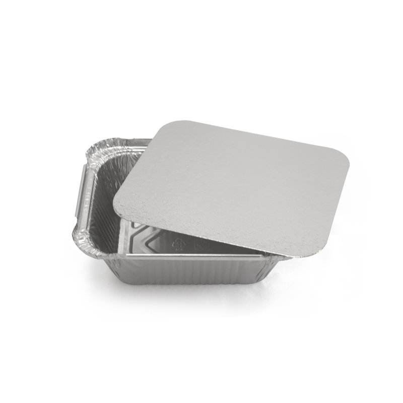 Крышка из фольгированного картона для алюминиевой формы на 470 мл позволит сохранить температуру горячих блюд.