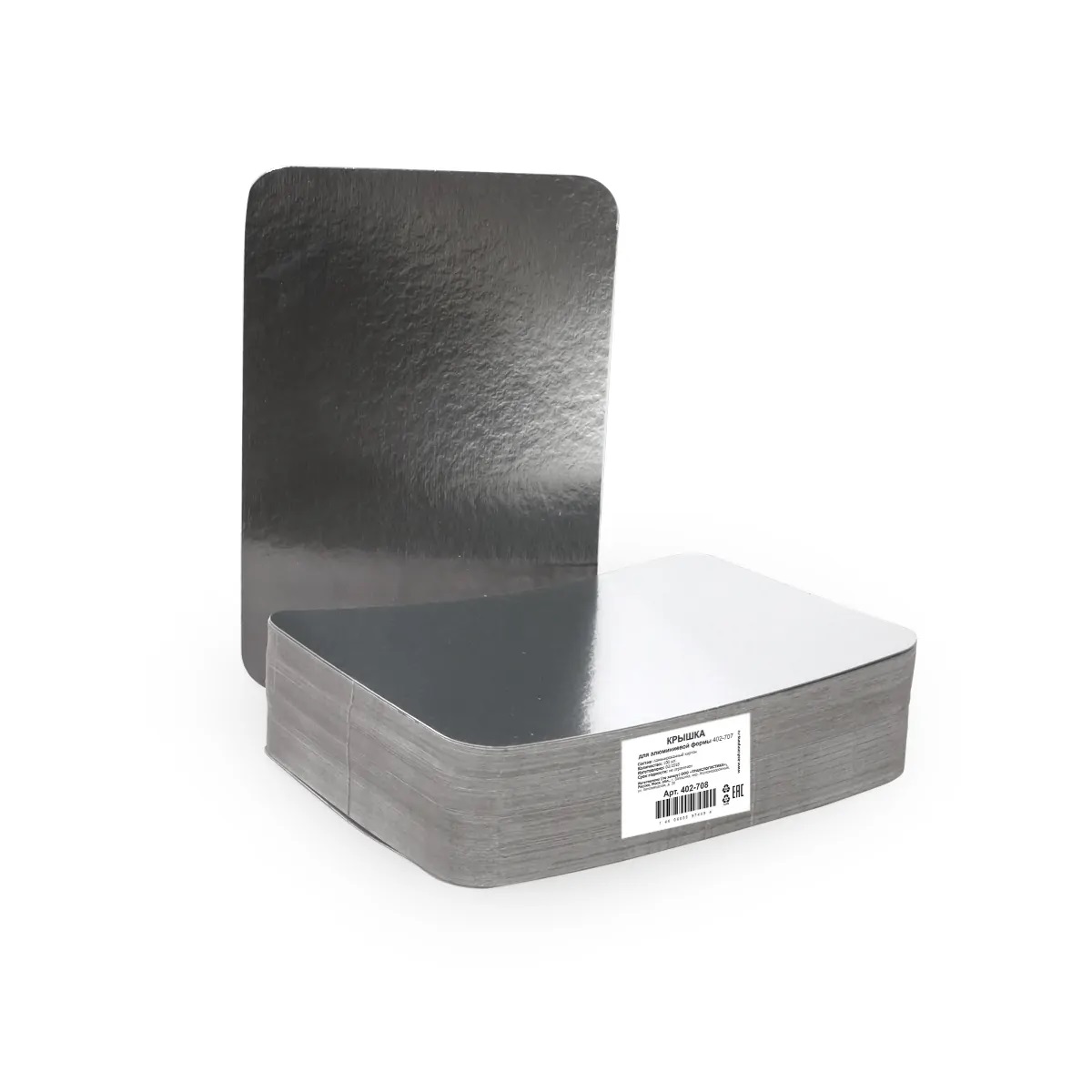 Крышка из фольгированного картона для алюминиевой формы на 1125 мл позволит сохранить температуру горячих блюд.