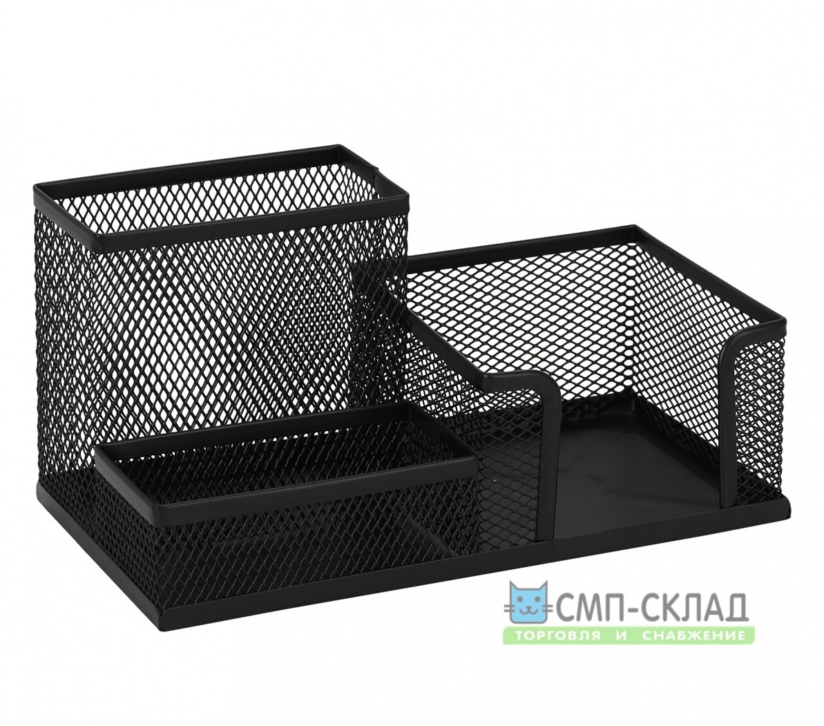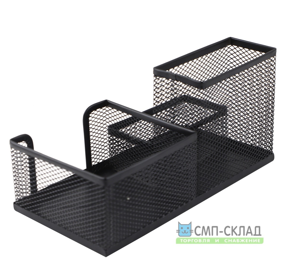 Стильный и функциональный органайзер. Предмет изготовлен из металлической сетки. черного цвета. Прочный корпус из металла. Сетчатое исполнение предотвращает образование пыли внутри.