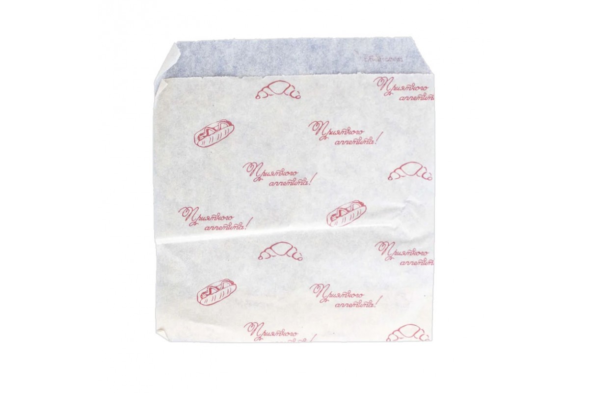 Пакет бумажный из жиростойкой бумаги белого цвета с рисунком булочек, слоек и кексов – универсальный расходный материал, используемый при подаче порционных блюд.