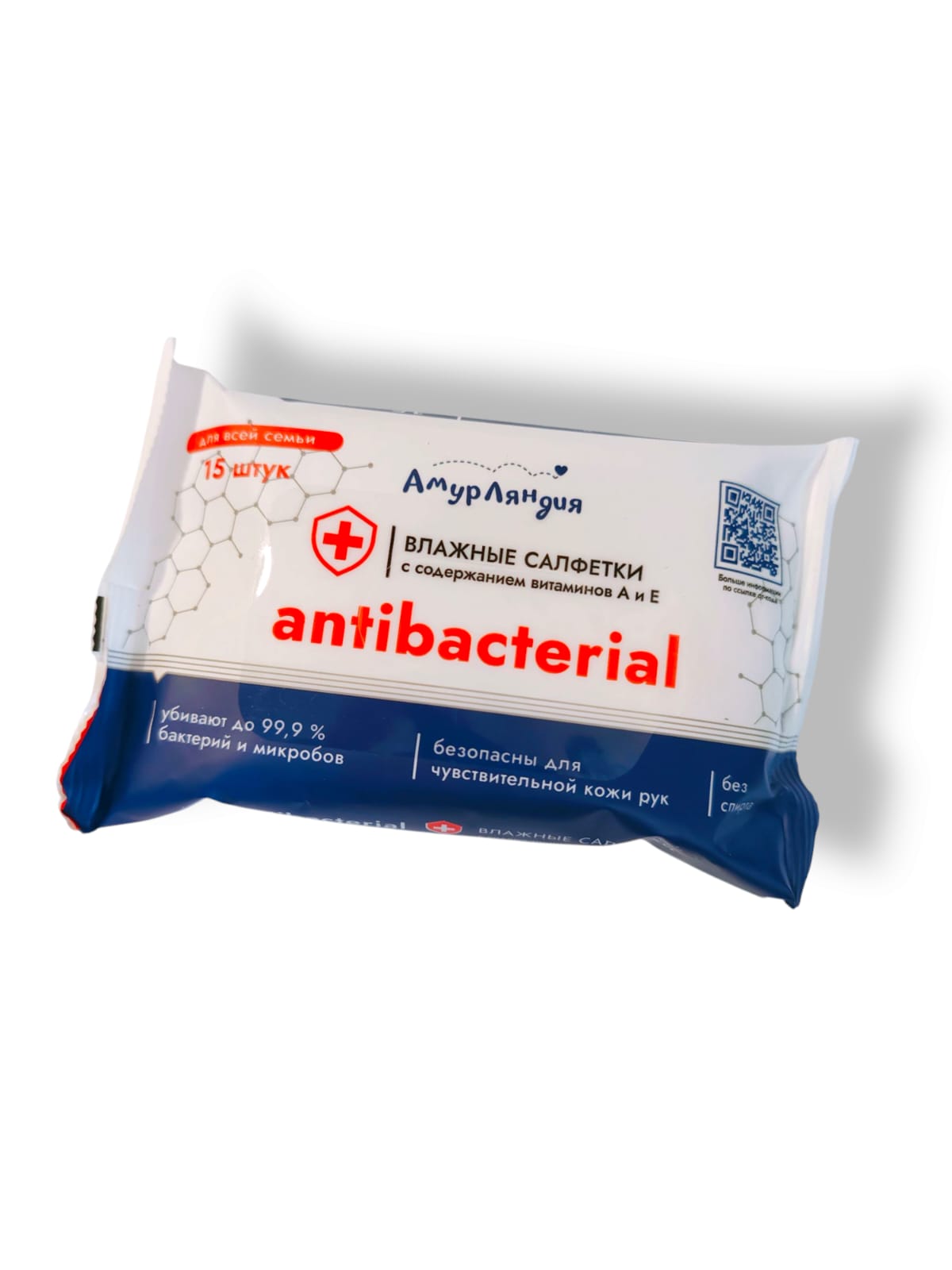 Салфетки влажные АмурЛяндия Антибактериальные, предназначены для ежедневной гигиены кожи рук и тела, а также для обработки разнообразных поверхностей предметов. Обеспечивают надежную долговременную защиту от бактерий и некоторых видов вирусов, обладают увлажняющим эффектом. Содержит витамины А и Е.